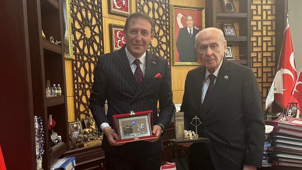 MHP Genel Başkan Başdanışmanı ve Fetih ve Kök: Ahlat/Malazgirt Çalışmaları Enstitüsü Başkanı Prof. Dr. Muhammet Hanifi Macit, MHP Genel Başkanı Devlet Bahçeli’yi makamında ziyaret etti.