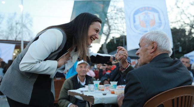 Efes Selçuk Belediye Başkanı Filiz Ceritoğlu Sengel, Ramazan'ın ilk gününde düzenlenen iftar öncesinde masaları tek tek gezerek genç, yaşlı, çocuk her yaştan Efes Selçuklu ile selamlaştı.