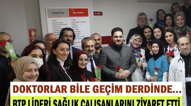 BTP Genel Başkanı Hüseyin Baş konuşmasının ardından sağlık çalışanlarına gül dağıttı.