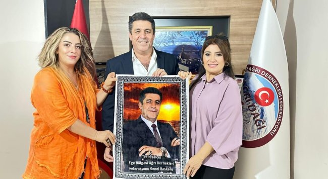 Genel Başkan Tekin Yalçın ve Kadın Kolları Başkanı Perihan Demir tarafından karşılanan Tekçe, Genel Başkan Yalçın’a, Yalçın’ın fotoğrafının bulunduğu el dokuma halı hediye etti.