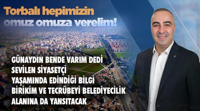 Tarihin bilinen devirlerinden beri çeşitli uygarlıkların merkezi durumunda olan Torbalı’ya AK Parti çatısı altında hizmet etmenin önemine vurgu yapan Günaydın ‘Doğup büyüdüğüm, yaşadığım ve derin bir sevdayla bağlı olduğum Torbalı'mıza daha fazla hizmet edebilmek için, daha önceki görevlerimizde olduğu gibi yine hemşehrilerimizin emrine amade olmak için, daha güzel, daha kalkınmış, daha mutlu bir Torbalı için Belediye Başkan aday adaylığımı açıklıyorum. Kültür, Sanat, Ekonomi, Tarım ve Hayvancılık gibi tüm alanlarda daha çok hizmet yapma maksadıyla çalışarak ve üreterek Torbalımıza hizmet etmek istiyorum. Rabbim mahcup etmesin. Aziz hemşehrilerimin dua ve desteklerini bekler, selam saygı ve sevgilerimi sunuyorum. Rabbim gönlümüzde olanı hakkımızda hayır etsin.'' İfadelerine yer verdi