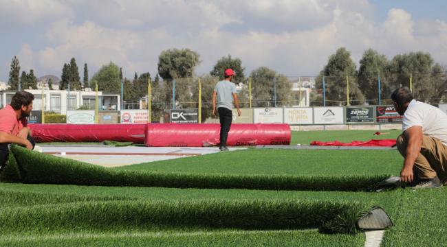 Bodrum Belediyesi Fen İşleri Müdürlüğü ve Kültür Sosyal İşler Müdürlüğü Spor Hizmetleri Bürosu ekiplerinin yaptığı ilk incelemelerde saha zemininin bozuk olduğu, saha eğiminin hatalı ve drenaj sisteminin yetersiz olduğu tespit edilmiş, bu nedenle yenileme kararı alınmıştı. Yapılan çalışmalarda; yabani otların temizlenmesi, zemin eğiminin düzeltilmesi, drenaj hatlarının kazılması, elektrik hatlarının yenilenmesi, mıcır serimi ve üst zemin sıkılaştırma işlemleri gibi aşamalardan geçildi. Aynı zamanda suni çim seriminden önce saha, sporcuların düşmeleri durumunda darbeleri emerek çarpışma enerjisini azaltan, saha zeminin kullanım süresini uzatarak deformasyonu en aza indiren “shock ped” ile donatıldı.