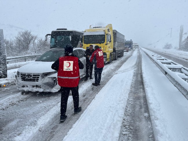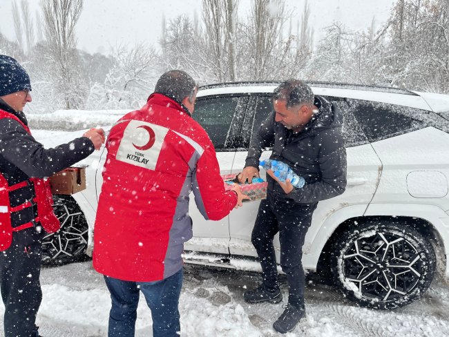Hafta sonu boyunca müdahale ekipleri ve araçlarıyla sahada çalışmalarını sürdüren Kızılay ekipleri, hem araçlarında mahsur kalan hem de en yakındaki misafirhanelere yönlendirilen vatandaşlara kumanya ve battaniye dağıtarak soğukla mücadelelerine destek oldu.