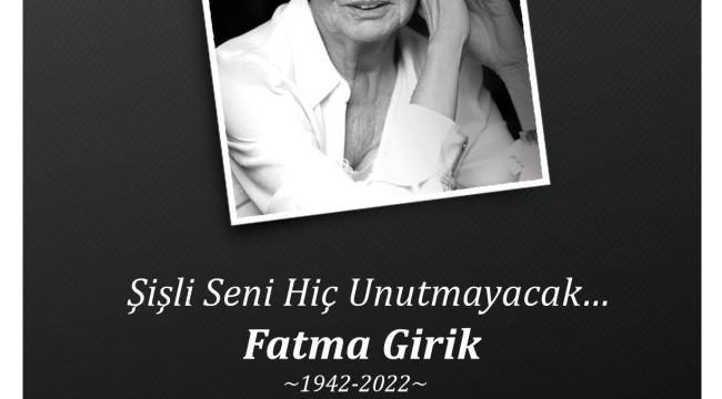 Hayat verdiği yüzlerce karakterle Türk sinemasında derin izler bırakan; dürüst, adil yönetim anlayışıyla Türk siyasetinde fark yaratan, Yeşilçam’ın dört yapraklı yoncasından Fatma Girik, aramızdan ayrılışının 1. yıldönümünde, 1989-1994 yılları arasında başkanlık görevini yürüttüğü Şişli’de anılacak. 24 Ocak Salı, saat 19.00’da Şişli Belediyesi Nâzım Hikmet Kültür ve Sanat Evi’nde düzenlenecek olan anma etkinliğine sanatçının ailesi, dostları, siyasette yol yürüdüğü arkadaşları ve sevenleri katılacak.
