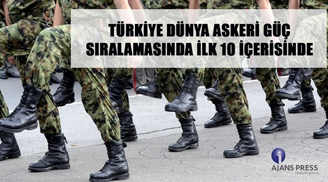 Medya takibinin öncü kurumu Ajans Press, askeri gücü ele alan raporu inceledi. Ajans Press’in Global Fire Power (GFP) verilerinden ve medya yansımalarından derlediği bilgilere göre, Türkiye askeri güç sıralamasında 137 ülke arasından 9. Sıraya yerleşti. Rapor, aktif askeri personel, toplan nüfus, toplam askeri araç adetleri gibi veriler göz önüne alınarak hazırlanırken, Türkiye’nin 0,2089 puan aldığı kayıtlara geçti. Veriler incelendiğinde birinci sıraya yerleşen ülkenin 0,0615 puanla Amerika Birleşik Devletleri olduğu görüldü. Onun dışında yer alan diğer ülkeler ise sırasıyla Rusya, Çin, Hindistan, Fransa, Japonya, Güney Kore, Birleşik Krallık ve son olarak Almanya şeklinde kaydedildi.