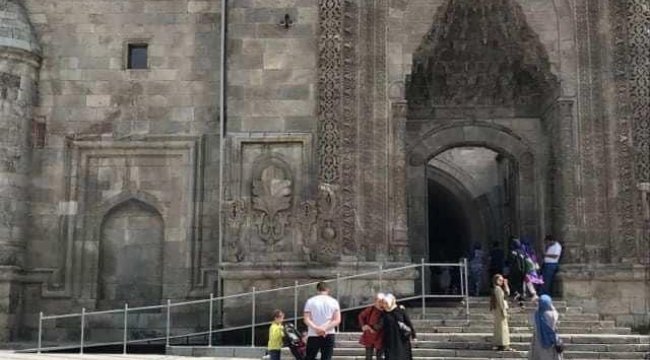 Vakıflar Bölge Müdürü Murat Uslu, Çifte Minareli Medrese’nin önüne konulan engelli rampasının geçici olarak kullanıldığını açıkladı.