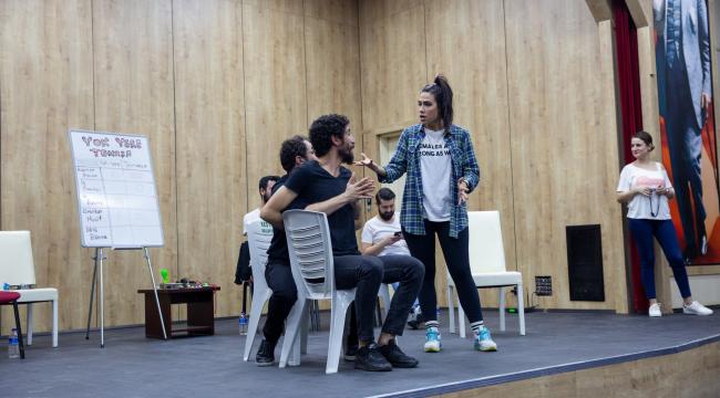 BURSA - Bursa Büyükşehir Belediyesi Şehir Tiyatrosu Doğaçlama Tiyatro Sporu ekibi ‘Yok Yere Temaşa’ gösterisi ile Salı günü Kestel’de tiyatro sevenleri adeta gülmekten kırdı geçirdi.